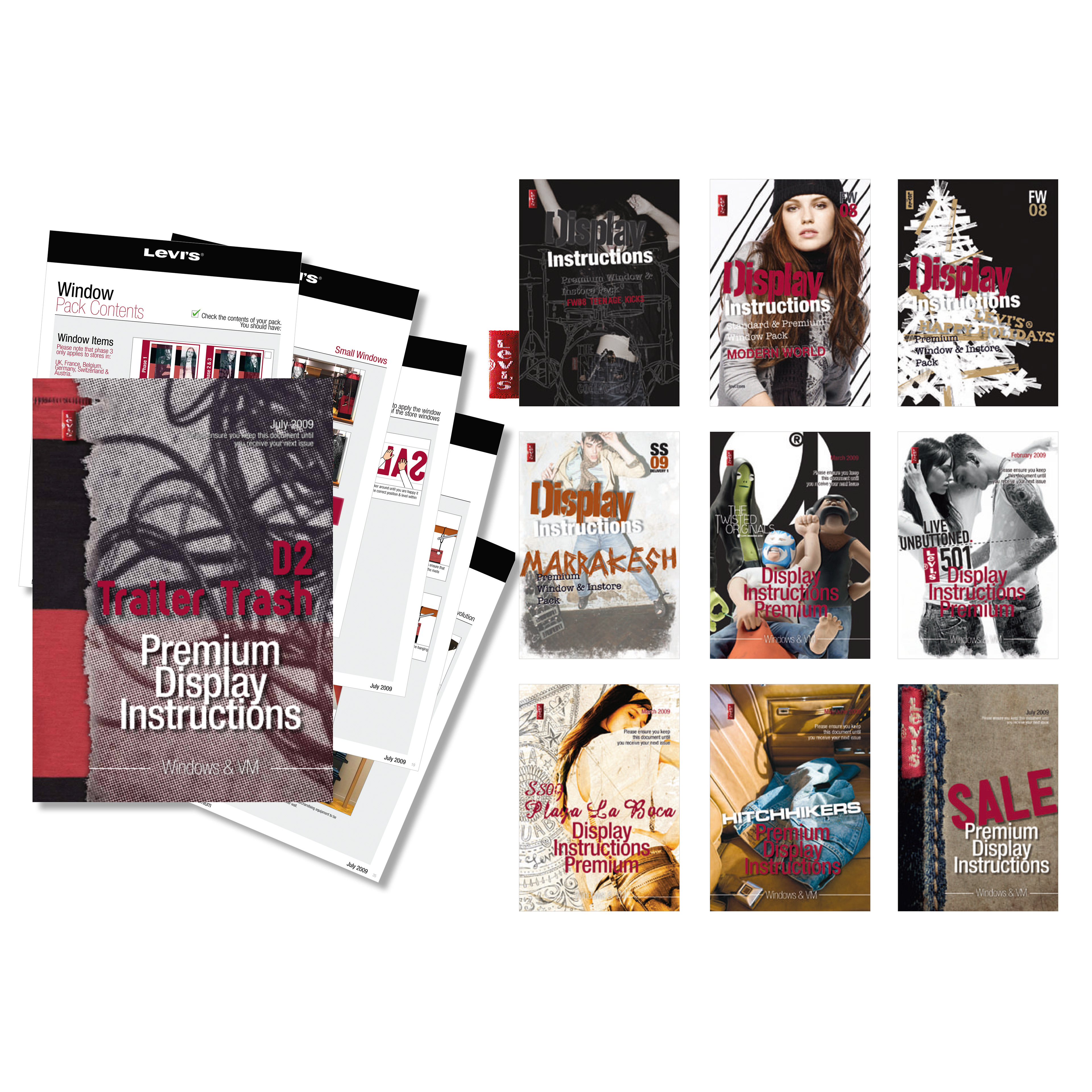 I started creating Artwork for Levi’s during a time I was working for SP Group, a large Midlands based printers. My role was to work on the highly complex monthly display instructions. When I was handed the project the system was chaotic making each pack extremely time consuming to create. With my past experience creating store communications, I streamlined the process and created an element of consistency but also individuality for each campaign. Due to my working relationship with the Levi’s Europe and UK teams I was asked to continue freelancing for them even when I was assigned a new client. Working for Levi’s was a huge buzz and such an amazing team of people to work and spend time with.